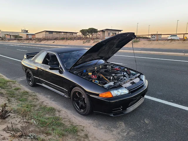 | Brian's R32 GT-R stopped on the side of PCH near Bolsa Chica |